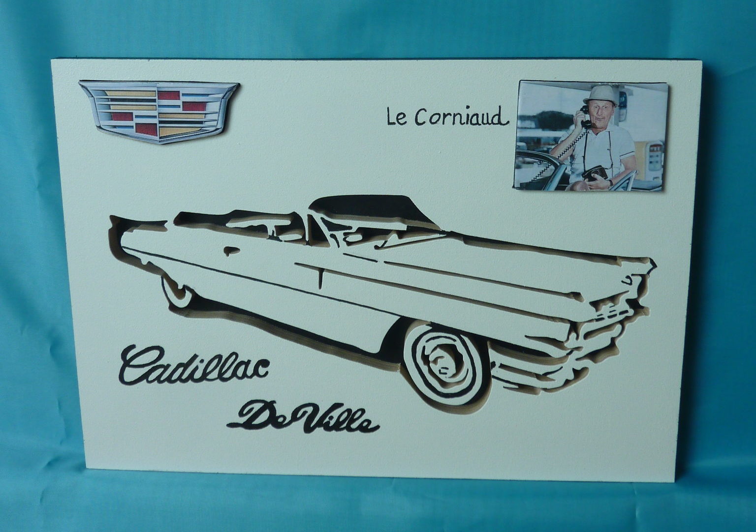 Réalisé dans du CP bouleau, avec le logo cadillac
